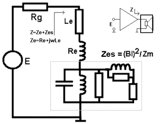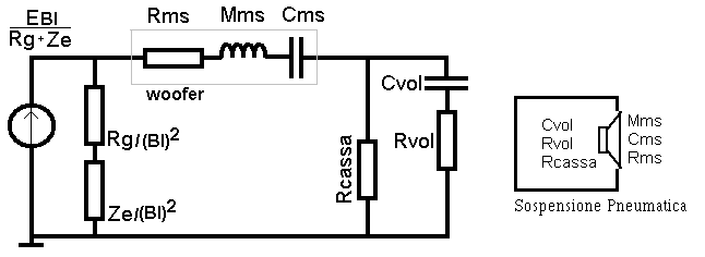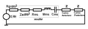 Circuiti equivalenti di un woofer in aria In questo circuito equivalente