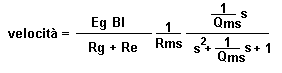 la velocità dell’apparato mobile di un woofer dinamico. s= j (w/w0) (variabile complessa) w0 = pulsazione del woofer =2pf0 f0 = frequenza di risonanza del woofer w = 2pf Lo spostamento va (quasi) come l’inverso del quadrato